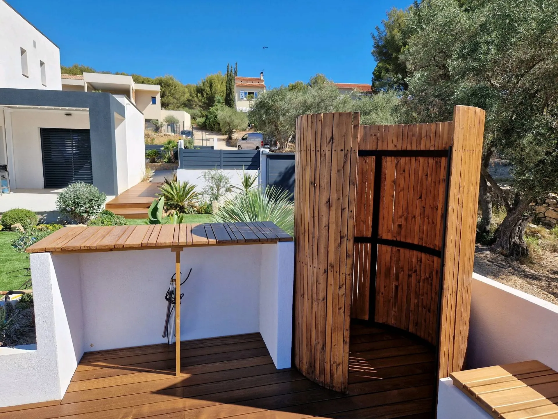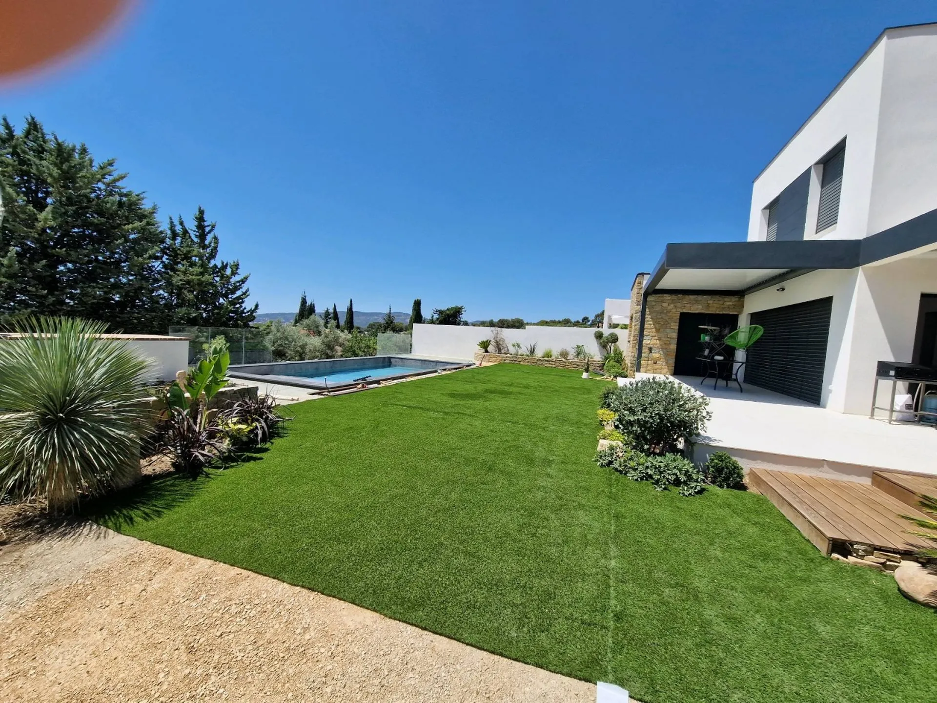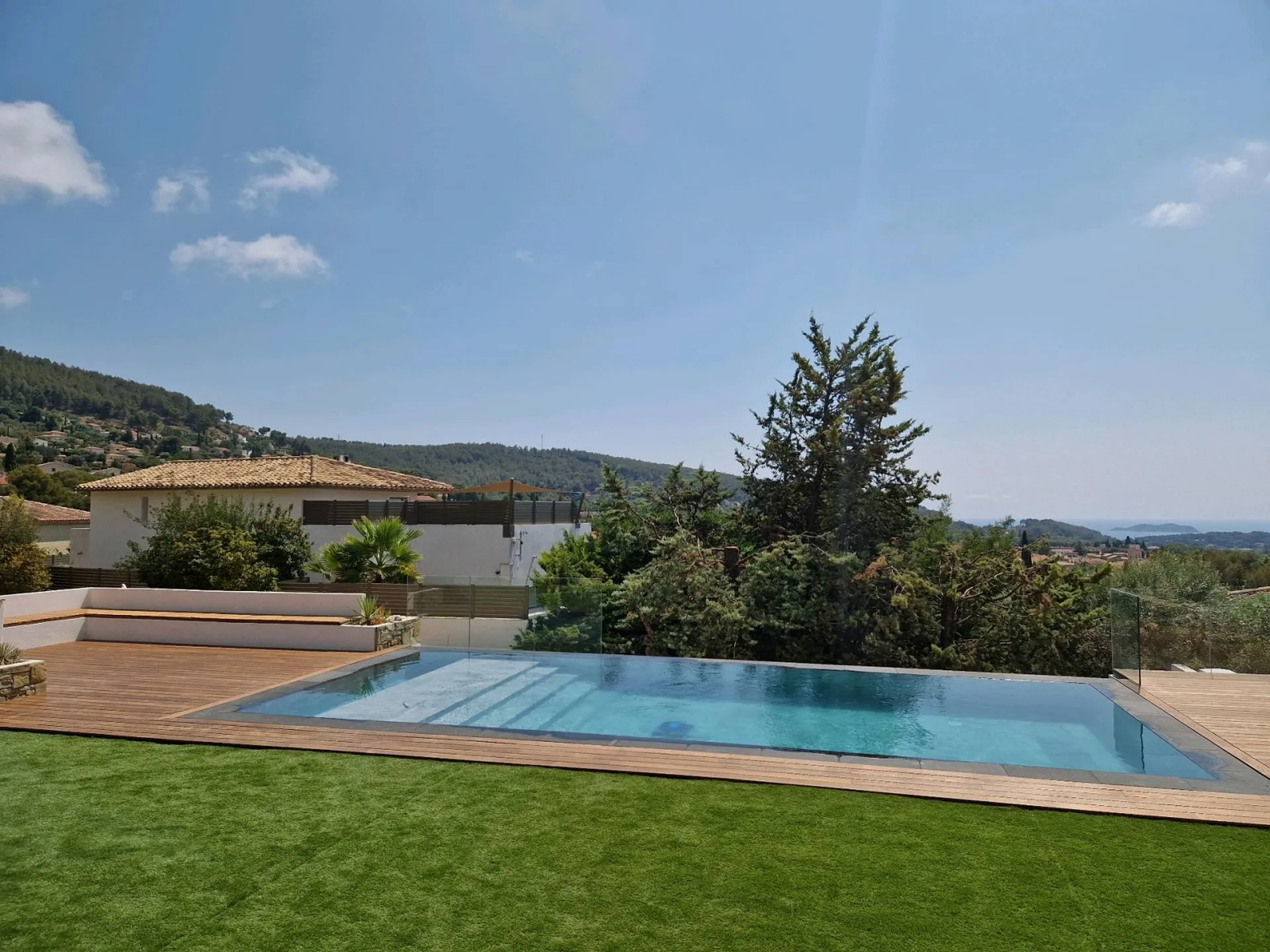 Suite au recommandation d'un client satisfait de la prestation que nous lui avons réalisé a la Croix Valmer nous avons eu la chance d'obtenir la confiance de ses amis à Saint Tropez pour la réalisation de cette superbe piscine miroir avec tout les équipements, carrelage et margelles en pierre naturelles, traitement de l'eau par électrolyse au sel et régulateur de pH. Aussi nous avons réalisé les aménagements extérieurs terrasse en bois et notre partenaire paysagiste à réalisé la pose d'un superbe gazon synthétique qui vient sublimer l'ensemble de cette réalisation. Si vous aussi vous souhaitez réaliser un projet de construction ou rénovation de piscine dans le Golf de Saint Tropez n'hésitez pas à nous contacter nous restons à votre écoute.