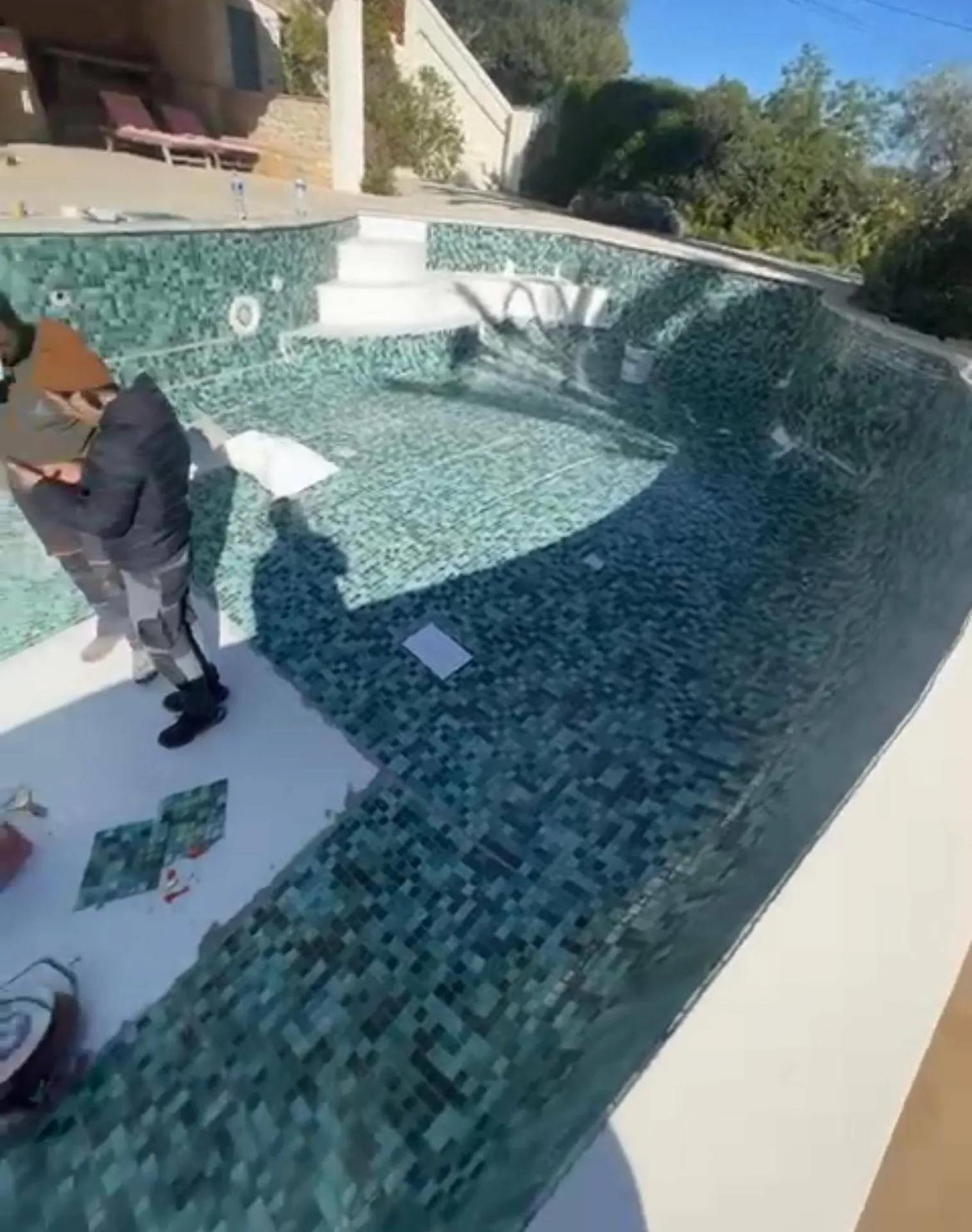 L'une des étapes clés a été la réfection du revêtement intérieur. Le choix s'est porté sur un enduit haut de gamme, résistant aux agressions extérieures et offrant une esthétique moderne. Par ailleurs, les margelles et le carrelage autour de la piscine ont été renouvelés, apportant une touche de modernité tout en conservant l'authenticité du lieu.